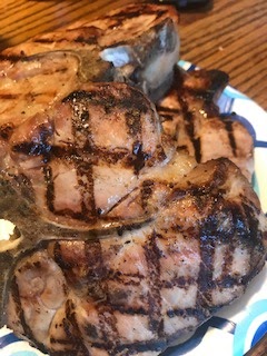We have a really great brining recipe for pork chops. It's from America's test kitchen and it includes brown sugar, salt, cloves, garlic and some other random things. A few months ago, Riley took a stab at making the brine and forgot the salt. We explained later that salt = brine. HAHA. Anyway, Rick and I teamed up on the brine today and it was perfection. He was also super impressed with his grill marks so there you go. Eat your heart out.